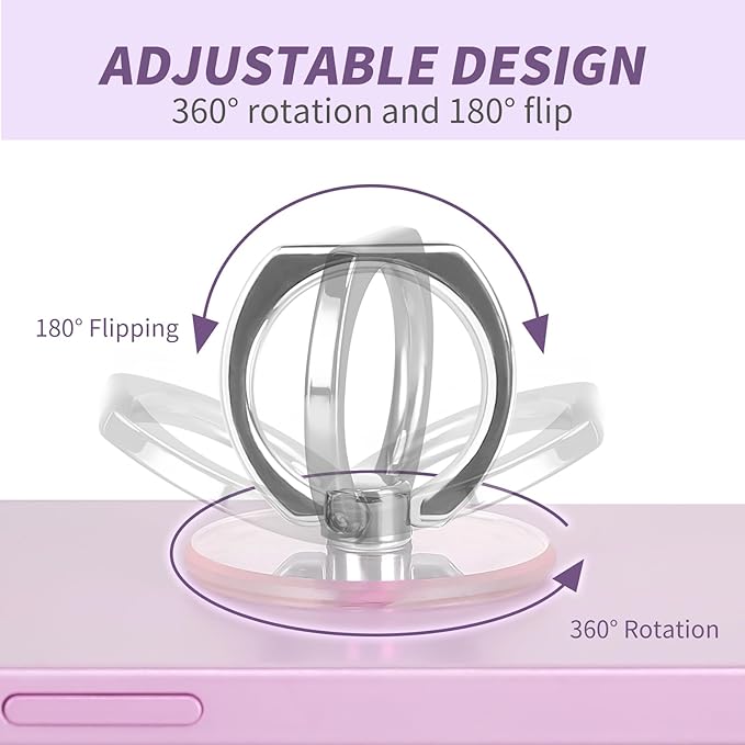 - Free Rotation Phone Ring Holder: Black, sliver, rose gold round transparent phone grip for you to choose. Size: round diameter 1.4 inch. 360°Rotation and 180°Flip fold to help you adjust your phone, different viewing angles to reading, watch videos.