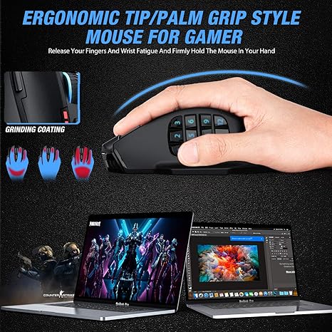 - 【Ergonomic Design Ensures Your Comfortable】Great as a real mouse stuck in your hand. The UtechSmart Venus Pro Wireless RGB MMO gaming mouse is flawlessly designed to alleviate wrist fatigue while being able to firmly hold the mouse in your hand. The grinding coating on the mouse surface increases the friction between your hand and the mouse. Grinding coating also provides gamer a extra comfortable sweat-resistant and skin-friendly gaming mouse.